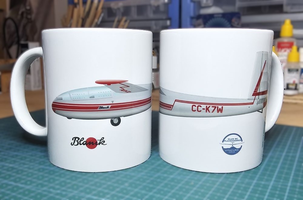 Tazón del planeador matrícula CC-K7W Blanik L-13, que se convirtió en histórico al realizar el primer cruce de un planeador de la Cordillera de los Andes por sus cumbres más altas el 12 de diciembre de 1964 que fue pilotado por el chileno Alejo Williamson, perteneciente al Club de Planeadores de Vitacura en Santiago, Chile. Capacidad 325 Ml / 11 onzas.