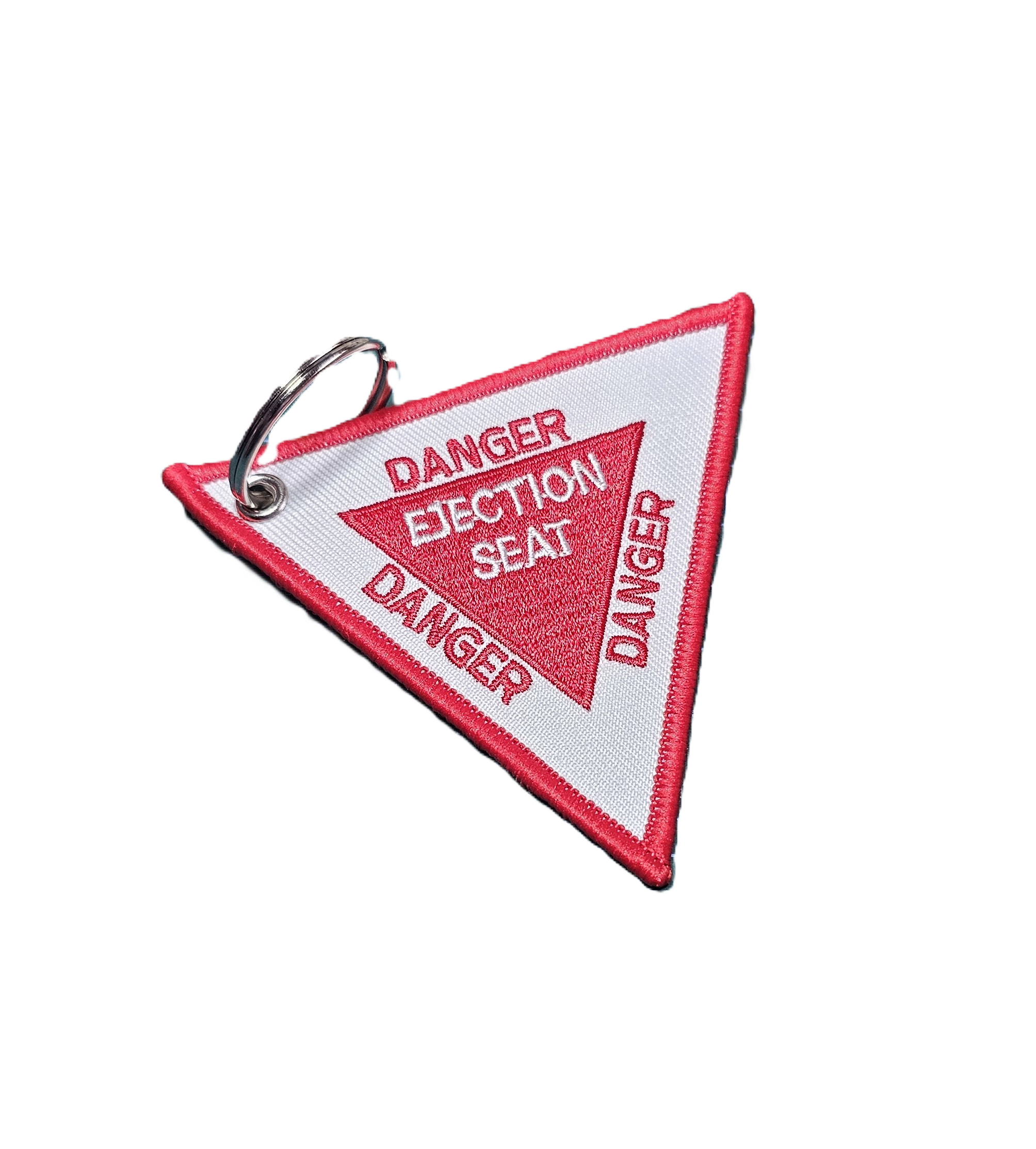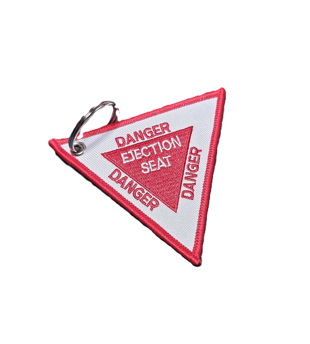 Llavero «Ejection Seat» rojo bordado con letras color blanco (9 x 9 x 9 Cms.)